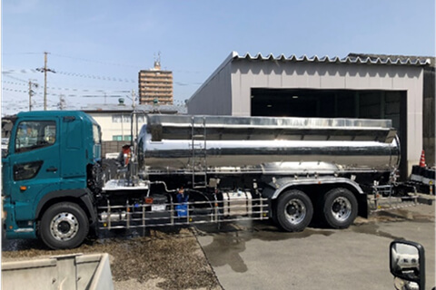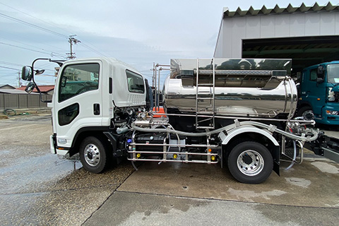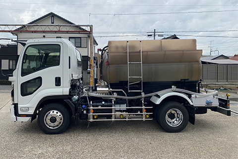 薬液によりタンクの載せ替えが可能なタンクローリーです。
